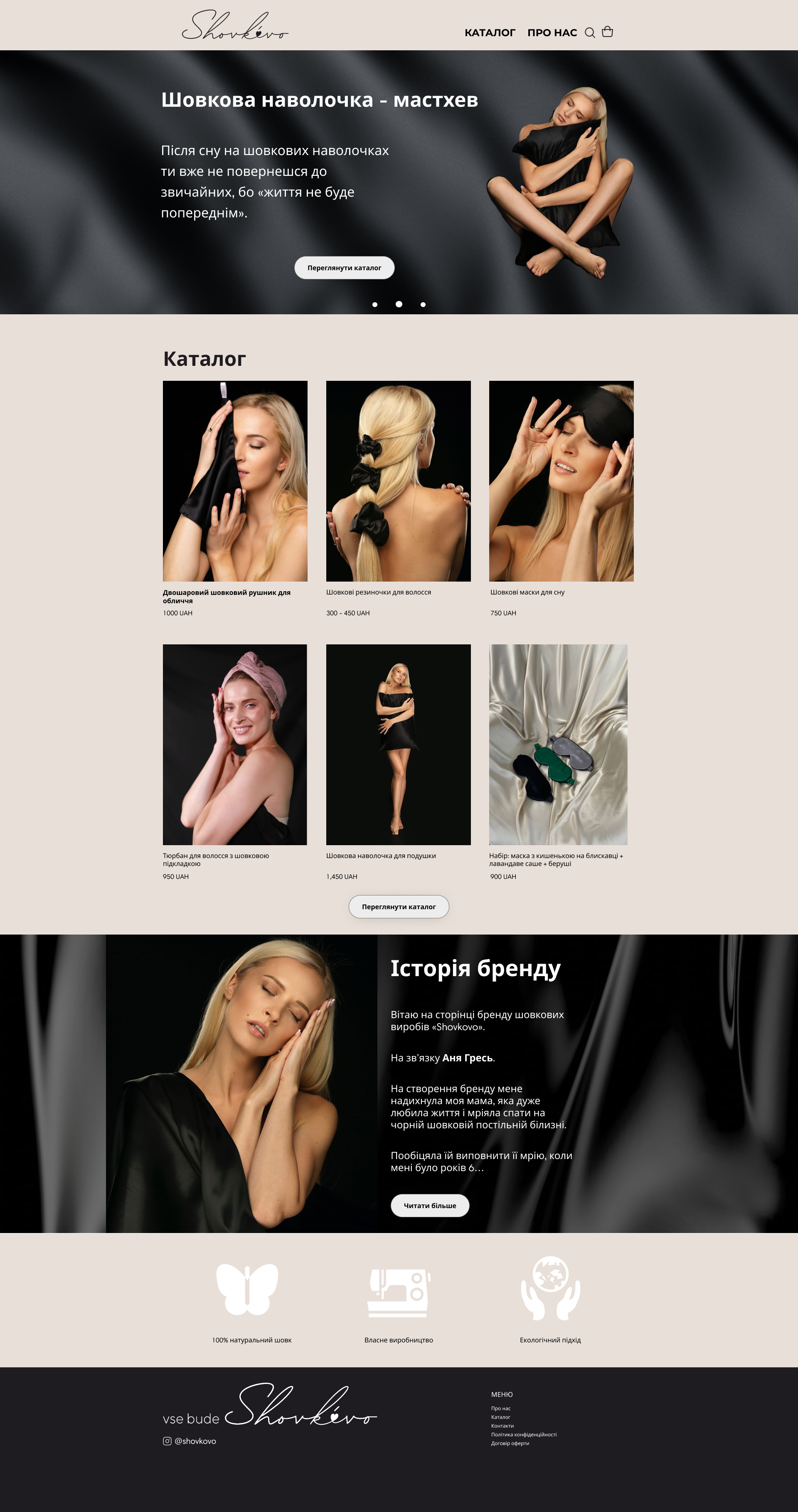 Shovkovo, a Ukrainian brand specializing in 100% silk accessories, built a loyal customer base on Instagram. However, the absence of a dedicated website limited product discoverability and complicated the purchasing process.