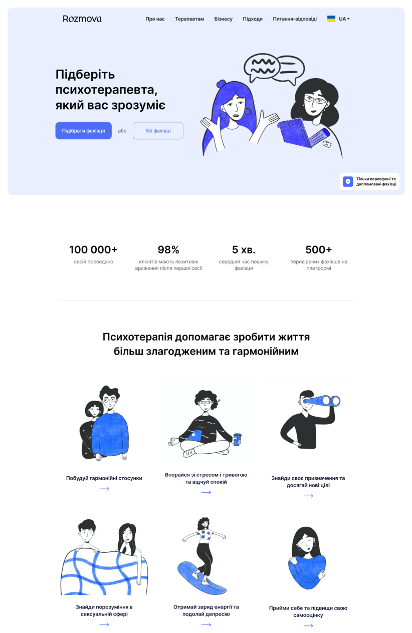 Modern Design & Organization Matter – both platforms prioritize clean and modern visual design, making information easier to digest. A well-structured landing page, as seen on Rozmova, improves usability and helps guide users efficiently.